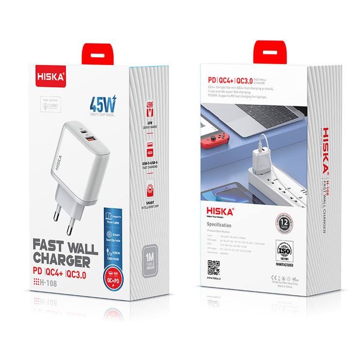 امروزه خرید شارژر به اندازه خرید دستگاه هوشمند مثل گوشی و تبلت نیازمند توجه ویژه است. بدون شک یکی از پرمصرفترین لوازم جانبی دیجیتال است که انتخاب آن در حفظ سلامت دستگاه به خصوص باتری نقش حیاتی دارد. شارژر اگر درست طبق معیار و استانداردهای موجود انتخاب نشود؛ باعث لطمه زدن به دستگاه یا باتری و کاهش عمر باتری میشود. علاوهبر استانداردهای موجود، بعضی از شارژرها قابلیتهای دیگری را نیز ارائه میدهند. شارژر دیواری هیسکا مدل H-108 یکی از محصولات شرکت هیسکا است و دارای گواهی استاندارد ROHS با محیطزیست نیز سازگار است و علاوهبر داشتن این استاندارد، دارای فناوری محافظت از سلامت باتری است و سلامت باتری را تضمین میکند. این دستگاه دارای دو پورت خروجی USB و PD است که پورت USB مجهز به فناوری QUICK CHARGE 3.0 است. البته باید دقت داشته باشید که برای استفاده از فناوری شارژ سریع، باید حتما گوشی هوشمند یا تبلت شما، توانایی پشتیبانی از تکنولوژی شارژ سریع را هم داشته باشد.