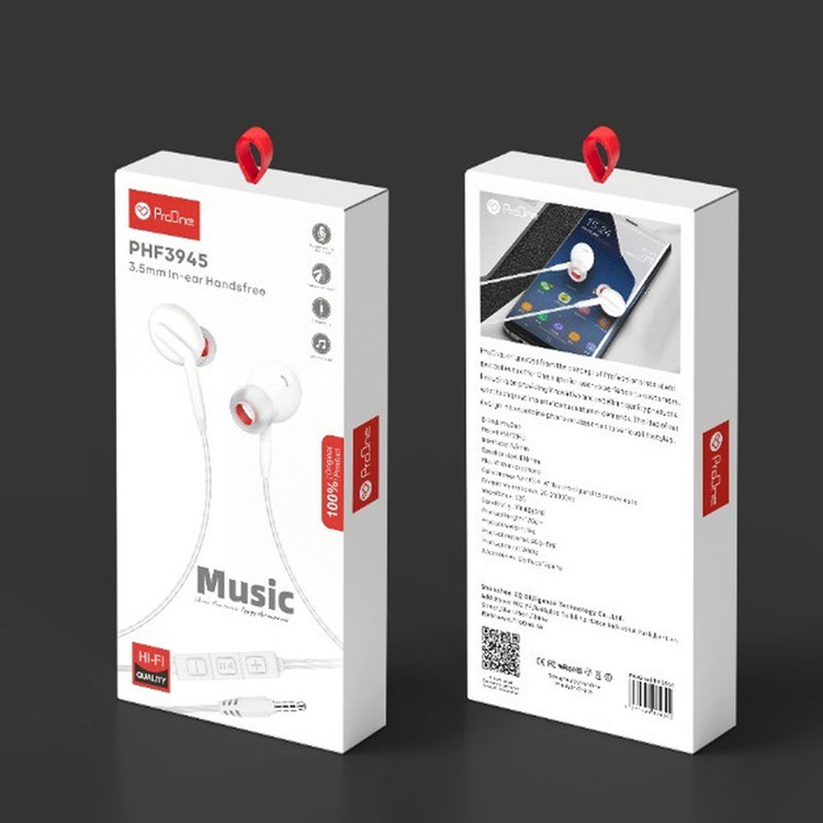 هندزفری سیم دار ProOne مدل PHF3945 محصولی دیگر از شرکت پرووان است. این هندزفری همانند محصولات دیگر پرووان از کیفیت بالایی برخوردار است. طراحی ارگونومیک و استاندارد این هندزفری از ویژگی های جالب توجه آن می باشد. همان طور که می دانید برای اتصال این هندزفری می بایست کابل آن را به پورت 3.5 میلی متری تلفن همراهتان متصل کنید. پخش صدای این هندزفری به صورت استریو است و می توانید میزان صدای در حال پخش را از طریق دکمه های مدیریتی روی بدنه این هندزفری، کم یا زیاد کنید همچنین می توانید تماس های دریافتی تان را تنها با فشردن دکمه مکالمه، پاسخ دهید.
