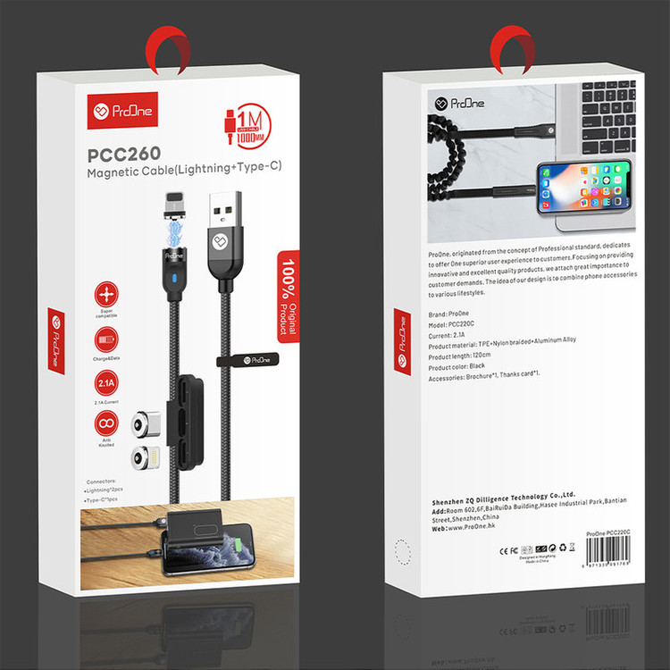 چگونه با یک تیر دو نشان بزنیم؟ یکی از رایجترین عواملی که باعث آسیب دیدن آی سی شارژ و پورت شارژ تلفن همراه شما میشود، نفوذ رطوبت و گرد و غبار به داخل گوشی هوشمند و استفاده مکرر و نامناسب از پورت شارژ در طول روز است. از دیگر دلایل میتوان شکستن کانکتور شارژر در پورت شارژر گوشی را نام برد.این عوامل طراحان را بر آن داشت تا کابلهای مگنتی یا آهنربایی را در دستور کار خود قرار دهند. کابل شارژ مغناطیسی، بهترین و راحتترین شارژر گوشی برای استفاده در مواقعی است که به علت نداشتن تسلط کافی اتصال شارژر به موبایل سخت است. مثلا هنگام رانندگی، دوچرخهسواری یا در تاریکی شب. این کابل دارای سری کوچک و سازگار با انواع قاب و کاور، نشانگر LED برای کار در نور کم و تاریکی، قدرت مغناطیسی قوی و قابلیت انتقال اطلاعات طراحی شده است. این کابل دارای 2 عدد سری شارژ مختلف، لایتنینگ (مخصوص آیفون) و تایپ سی بوده و قادر به شارژ تمامی گوشیهای تلفن همراه تا این لحظه است یا به عبارتی با خرید این کابل هزینه 2 کابل دیتا و فست شارژ را پرداختید. رشته سیمهای مسی پر شمار و خالص به کار رفته در این محصول، این کابل را قادر میسازند تا گوشی تلفن همراه شما را با شدت جریان 2.1 آمپر شارژ کرده، همچنین اطلاعات تلفن همراه شما را با انتقال پایدار الکتریسیته، امنیت و سرعت بالا روی کامپیوتر شما منتقل کند. پوشش بیرونی این کابل با الیاف در هم تنیده و محکم با تراکم بالا بافته شده تا خیالتان را از پارگی، گرهخوردگی، قطعی و شکستگی راحت کند. کانکتورهای بهکار رفته در این کابل آلومینیمی و بسیار مرغوب بوده، به همین علت شما با مشکلات خوردگی و زنگ زدگی در سر سوکتها مواجه نخواهید شد. این محصول در سری سوکت شارژ خود از کیت هوشمند تثبیت کننده جریان الکتریسیته، ضد اتصال کوتاه و افزایش دما بهره میبرد.