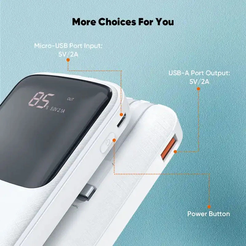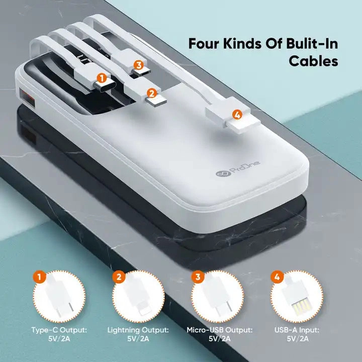 شارژ شدن سریع پاوربانک (با شدتجریان 2.0 آمپر و بالاتر) , کابل متصل به بدنه