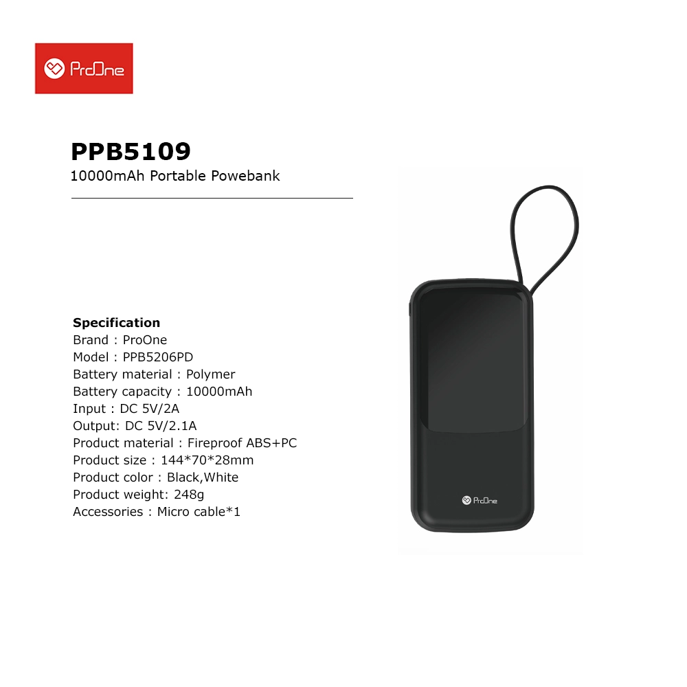 پاوربانک پرووان PPB5109 از جمله محصولاتی است که میتواند با ظرفیت 10000 میلی آمپر و کیفیت بالایی که در ساخت آن به کار رفته نیاز قشر گستردهای از جامعه را برطرف کند. پاوربانک پرووان PPB5109 از یک باتری لیتیم پلیمری با ظرفیت 10000 میلی آمپر بهره میبرد. شما با این پاوربانک پرووان دیگر دغدغه تمام شدن زودهنگام باتری موبایل را نخواهید داشت. باتری پاوربانک پرووان PPB5109 از کیفیت و ماندگاری بالایی برخوردار است که شما به دفعات زیاد میتوانید از آن استفاده کنید. ظرفیت این پاوربانک به اندازهای است که میتوانید به نسبت ظرفیت باتری دستگاهتان، آن را به دفعات شارژ کنید. پاوربانک PPB5109 از دو درگاه خروجی 5 ولت با شدت جریان 2 آمپر بهره میبرد که توان خروجی معادل با 22.5 وات را به شما ارائه میدهد. این توان کافی است که بتواند دستگاه شما را در زمان مناسب به صورت فست شارژ کند. البته لازم به ذکر است که شما میتوانید از هر دو خروجی برای شارژ هم زمان دو دستگاه استفاده کنید، که در این صورت توان خروجی اندکی کاسته میشود. پاوربانک پرووان PPB5109 میتواند در مدت زمان 5 ساعت شارژ کامل شود و مورد استفاده قرار گیرد. پاوربانک PPB5109 از فناوری شارژ سریع کوالکام (QC) و انتقال سریع شارژ (power delivery) بهره میبرد.از دیگر ویژگیهای پاوربانک پرووان PPB5109 که آن را از دیگر محصولات متمایز کرده است وجود یک نمایشگر دیجیتال است.از دیگر قابلیت های فوق العاده این محصول داشتن کابل های منحصر با هرگوشی موبایل است بر روی خود آن است که استفاده از این محصول را به ایده آل ترین حالت ممکن میرساند.