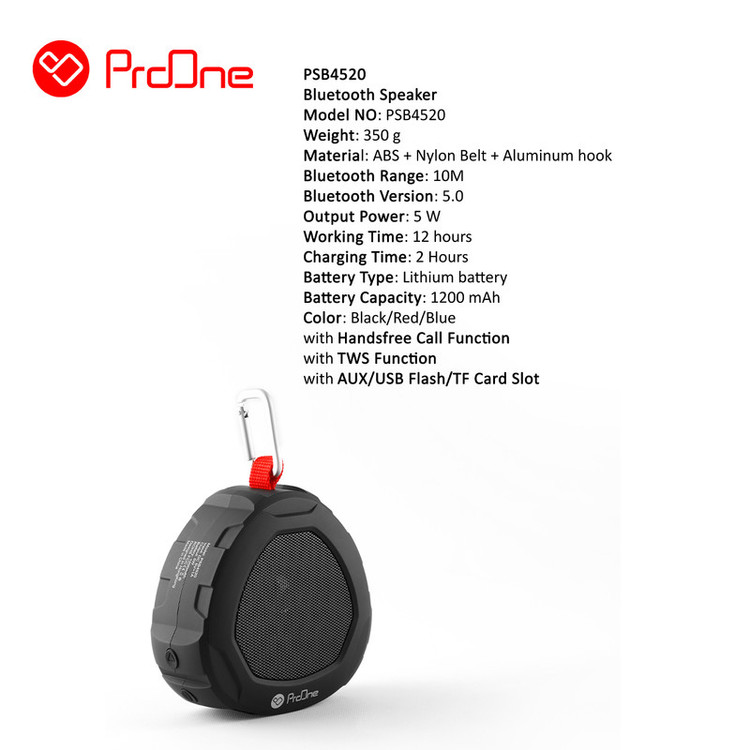 اسپیکر پرووان PSB4520 از جمله تولیدات شرکت پرووان است که برای رفع نیاز مردم در جهت استفاده از پخش کنندههای موسیقی تولید شده است. این اسپیکر در ابعادی معادل طول 125 و ارتفاع 117 میلی متر تولید شده است که وزنی معادل 354 گرم دارد. این میزان وزن در جهت حمل و استفاده روزانه بسیار مناسب است و شما میتوانید اسپیکر پرووان PSB4520 از یک باتری با ظرفیت 1200 میلی آمپر از جنس لیتیم قابل تعویض بهره میبرد. لازم به ذکر است که باتری این اسپیکر از جنس مرغوبی تولید شده است و به راحتی بازدهی خود را از دست نمیدهد. شارژ اسپیکر از طریق یک درگاه USB بوده که در مدت زمان 2 ساعت به صورت کامل شارژ میشود. پس از شارژ کامل میتوانید به مدت 8 ساعت از آن استفاده کنید. این اسپیکر از بلوتوث نسخه 5 بهره میبرد که برد موثر 10 متر دارد و موسیقی شما قطع نمیشود. از دیگر ویژگیهای این اسپیکر میتوان به قابلیت مکالمه اشاره کرد. از ویژگیهای محبوب این اسپیکر میتوان به فناوری TWS اشاره کرد. قابلیت TWS به این معنی است که شما میتوانید دو دستگاه با مدل یکسان را به یکدیگر وصل کرده و به صورت هم زمان از آنها استفاده کنید. یکی از ویژگیهای منحصر به فرد اسپیکر پرووان PSB4520 قابلیت ضد آب آن است که دارای استاندارد IPX6 میباشد. شما به جز اتصال بلوتوث میتوانید از درگاه کارت حافظه میکرو و کابل AUX در جهت پخش موسیقی استفاده کنید.