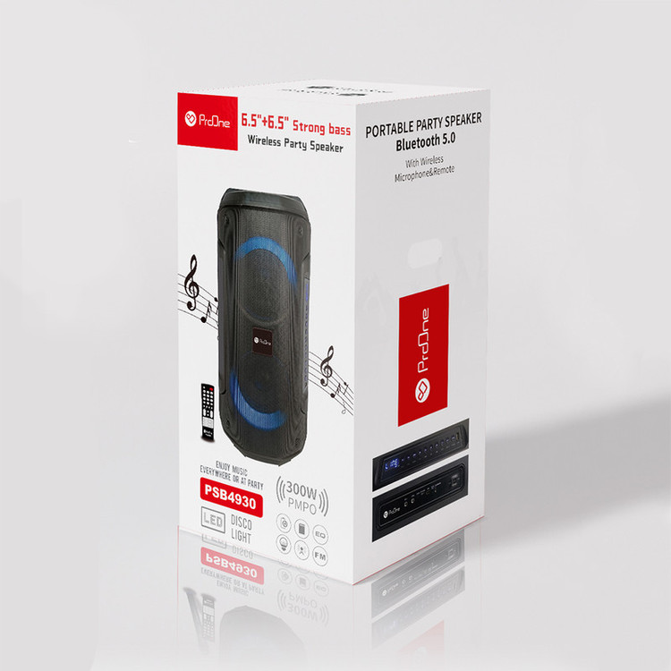 اسپیکر پرووان مدل Party Box 4930 محصولی از شرکت «پرووان» است که به واسطه توان خروجی بالا؛ صدای پرقدرت و شفافی را برای برگزاری مهمانیها و مجالس ایجاد میکند. علاوه بر حجم زیاد صدای خروجی، طراحی زیبا، افکتهای متنوع نورانی و قابل حمل بودن؛ این محصول را به یکی از اسپیکرهای جذاب موجود در بازار تبدیل کرده است. این اسپیکر از طریق فناوری بلوتوث، پورت USB وخروجی AUX و مموری کارت به تلفنهمراه یا پخشکنندههای مختلف صوتي متصل میشود. اسپیکر پرووان Party Box 4930 پرووان انرژی مورد نیاز خود را از طریق یک باتری داخلی لیتیوم یونی پر قدرت با ظرفیت 3600 میلی آمپر ساعت تامین میکند که برای پخش موسیقی به مدت 1.5 ساعت جوابگو است. شارژ شدن کامل این محصول تنها 4 ساعت زمان میبرد که با توجه به ظرفیت آن، زمان نسبتا مناسبی است. توسط بلوتوث یا همان قابلیت TWS میتوانید دو دستگاه Party Box 4930 را به طور همزمان به یکدیگر متصل کنید؛ همچنین این محصول دارای ورودیهای مجزا برای میکروفون و گیتار بوده که همه چیز را برای یک اجرای حرفهای فراهم میکند. اسپیکر پرووان Party Box 4930 قابلیت کاراکوئه دارد که توسط آن میتوانید روی صدای خواننده همزمان با صدای خود خوانندگی کنید.