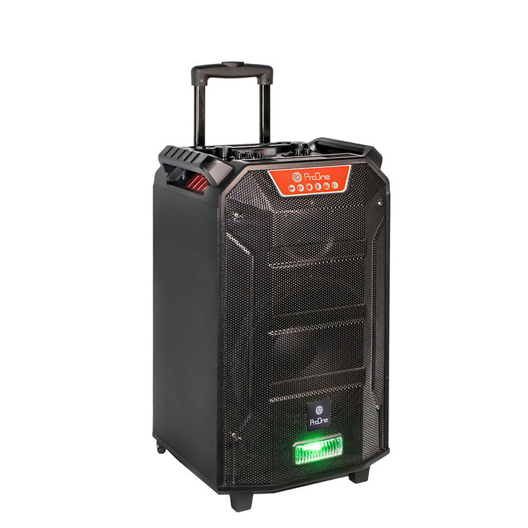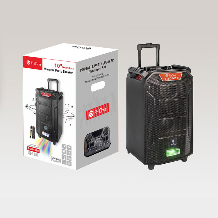 صدای خوب و رسا همیشه برای اجرای مهمانیهای خانوادگی و جشنهای تولد، عروسی و مولودی و یا هر مراسمی نیاز به یک سیستم خوب صوتی است که صدا را بهصورت واضح و در شعاعی مورد قبول با کیفیت بالا پخش کند.یک سیستم صوتی خوب دارای یک ساب ووفر است که قدرت خروجی صدای آن بالا باشد.اگر به دنبال اسپیکر چمدانی به همراه میکروفون هستید، اسپیکر چمدانی پرووان مدل PSB4960 یکی از گزینههایتان است.این اسپیکر 10 اینچی کیفیت بالایی داشته و توان آن 80 وات است که میتوانید برای اجرای زنده یا مراسم از آن استفاده کنید. این مدل دارای یک دستگیره و دو چرخ در قسمت پایین است که میتوانید آن را به صورت چمدانی جابهجا کنید. این اسپیکر دارای 6 پیچ تنظیم Volume ،Guitar Volume، Bass، Treble، Echo و Mic Vol است. این مدل از طریق USB، شیار کارت حافظه و جک 3.5 میلیمتری و بلوتوث قابلیت پخش موسیقی از دستگاه یا فلش را به شما میدهد. در قسمت جلویی این اسپیکر از نورپردازی استفادهشده است. در محیطهای تاریک این نورپردازی میتوان فضایتان را زیباتر کند. یکی از ویژگیهای این مدل قابلیت خاموش و روشن کردن نور و اسپیکر بهوسیله دکمه مجزا است و با داشتن ریموت کنترل مخصوص میتوانید اسپیکر را تنظیم کنید. میکروفون استفاده شده برای این اسپیکر قابلیت اتصال بیسیم را دارد. این ویژگی باعث شده تا شعاع عملکردتان افزایش یابد.