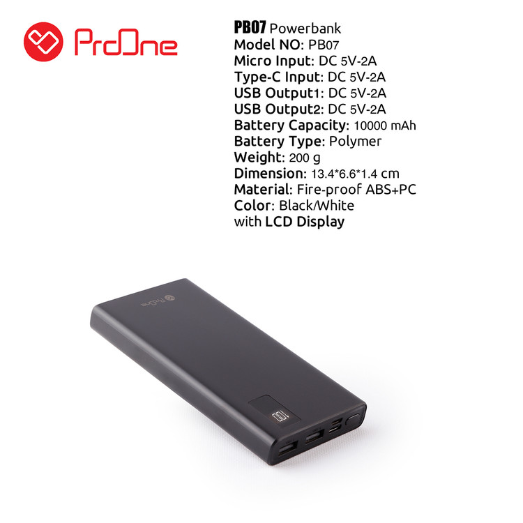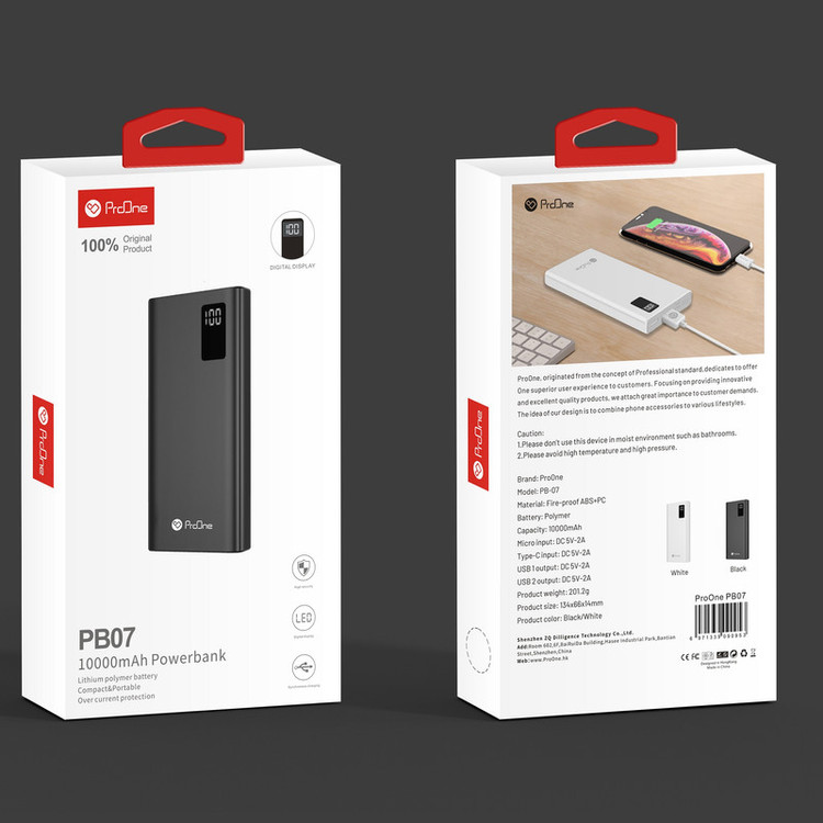 پاوربانک پرووان pb07 از جمله محصولاتی است که میتواند با ظرفیت 10000 میلی آمپر و کیفیت بالایی که در ساخت آن به کار رفته نیاز قشر گستردهای از جامعه را برطرف کند. پاوربانک پرووان PB07 از یک باتریم لیتیم پلیمری با ظرفیت 10000 میلی آمپر بهره میبرد. شما با این پاوربانک پرووان دیگر دغدغه تمام شدن زودهنگام باتری موبایل را نخواهید داشت. باتری پاوربانک پرووان PB07 از کیفیت و ماندگاری بالایی برخوردار است که شما به دفعات زیاد میتوانید از آن استفاده کنید. ظرفیت این پاوربانک به اندازهای است که میتوانید به نسبت ظرفیت باتری دستگاهتان، آن را به دفعات شارژ کنید. پاوربانک PB07 از دو درگاه خروجی 5 ولت با شدت جریان 2 آمپر بهره میبرد که توان خروجی معادل با 10 وات را به شما ارائه میدهد. این توان کافی است که بتواند دستگاه شما را در زمان مناسب شارژ کند. البته لازم به ذکر است که شما میتوانید از هر دو خروجی برای شارژ هم زمان دو دستگاه استفاده کنید، که در این صورت توان خروجی اندکی کاسته میشود. همچنین دو درگاه ورودی نیز با مشخصات ولتاژ 5 ولت و شدت جریان 2 آمپر روی دستگاه قرار دارند تا بتوانید با استفاده از کابل micro-usb و یا type-c نسبت به شارژ آن اقدام کنید. پاوربانک پرووان PB07 میتواند در مدت زمان 7 ساعت شارژ کامل شود و مورد استفاده قرار گیرد. پاوربانک PB07 از فناوری شارژ سریع کوالکام (QC) و انتقال سریع شارژ (power delivery) بهره نمیبرد. پس بنابراین باید با توجه به ظریفت باتری دستگاهتان انتظار زمان شارژ متوسطی را داشته باشید. پاوربانک پرووان pb07 در ابعادی با طول 66، عرض 14 و ارتفاع 134 میلی متر تولید شده است. این ابعاد برای هر فردی که نیاز دارد تا از پاوربانک خود به صورت روزانه استفاده کند بسیار ایده آل است. پاوربانک پرووان pb07 با وزن 201 گرم به هیچ عنوان باعث خستگی حین حمل نمیشود و به دلیل ابعاد کوچکی که دارد به راحتی در محفظه کنار کیف و یا در جیب شلوار قرار میگیرد. جنس بدنه این پاور بانک از ABS و پلیمر کربن است و ذکر این نکته ضروری است که بدنه آن خاصیت ضد حریق دارد. از دیگر ویژگیهای پاوربانک پرووان PB07 که آن را از دیگر محصولات متمایز کرده است وجود یک نمایشگر دیجیتال است.