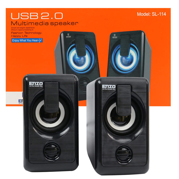 اسپیکر های دسکتاپ یا رومیزی برای استفاده در کامپیوتر ها و یا لپ تاپ ها طراحی شده اند تا بهترین خروجی صدای ممکن را برای کاربری های مختلف از جمله گیمینگ، تماشای فیلم و یا موسیقی داشته باشند. اسپیکر رومیزی Enzo SL-114 نیز یک پخش کننده ۲ تکه است که با قیمت اقتصادی خود می تواند پاسخ گوی بسیاری از سناریو های روزمره کاربران باشد و علاوه بر رایانه شخصی در گجت های قابل پشتیبانی دیگر نیز مورد استفاده قرار گیرد. اتصال این اسپیکر به سیستم مورد نظر از طریق جک ۳٫۵ میلی متری صدا و پورت USB می باشد، استفاده ار پورت USB در این اسپیکر موجب شده تا به راحتی امکان انتقال و حمل آن را داشته باشید و از طریق پورت USB لپ تاپ انرژی آن را تامین کنید. اسپیکر دسکتاپ انزو مدل SL-114 به کلید فیزیکی تنظیم صدا نیز مجهز است تا به راحتی میزان صدای سیستم را مدیریت کنید.