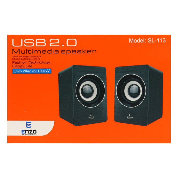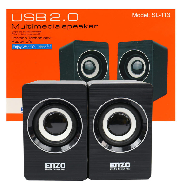 برند Enzo تولید کننده مدل های متنوعی از اسپیکر می باشد از جمله مدل SL-113 که یک اسپیکر دو تکه با سیم بوده و قابل اتصال به گوشی تلفن همراه، کامپیوتر، لپ تاپ و سایر دستگاه های دارای درگاه مرتبط طراحی شده است. Enzo SL-113 از طریق جک ۳٫۵ میلی متری صدا و پورت USB قابلیت دسترسی به لیست آهنگ های مورد نظر کاربر را جهت پخش صدا و موسیقی دارد و تامین انرژی آن نیز از طریق رابط USB 2.0 صورت می گیرد. این محصول با طراحی ظریف و جمع و جور و وزن کمی که دارا می باشد به راحتی امکان جابجایی داشته، همچنین جنس بدنه آن نیز از پلاستیک مقاوم در برابر فشار و ضربه ساخته شده است. روی بدنه SL-113 کلید فیزیکی تنظیم صدا وجود دارد و این اسپیکر دارای حداکثر توان خروجی ۳٫۵ وات با حساسیت سیگنال به نویز ۵۸ دسی بل می باشد. این هدفون دامنه پاسخگویی برابر با ۲۰ هرتز الی ۲۰ کیلوهرتز دارد تا تمامی صداهای زیر و بم را به خوبی پوشش داده و کیفیت صدای بالای دستگاه را تضمین می کند.