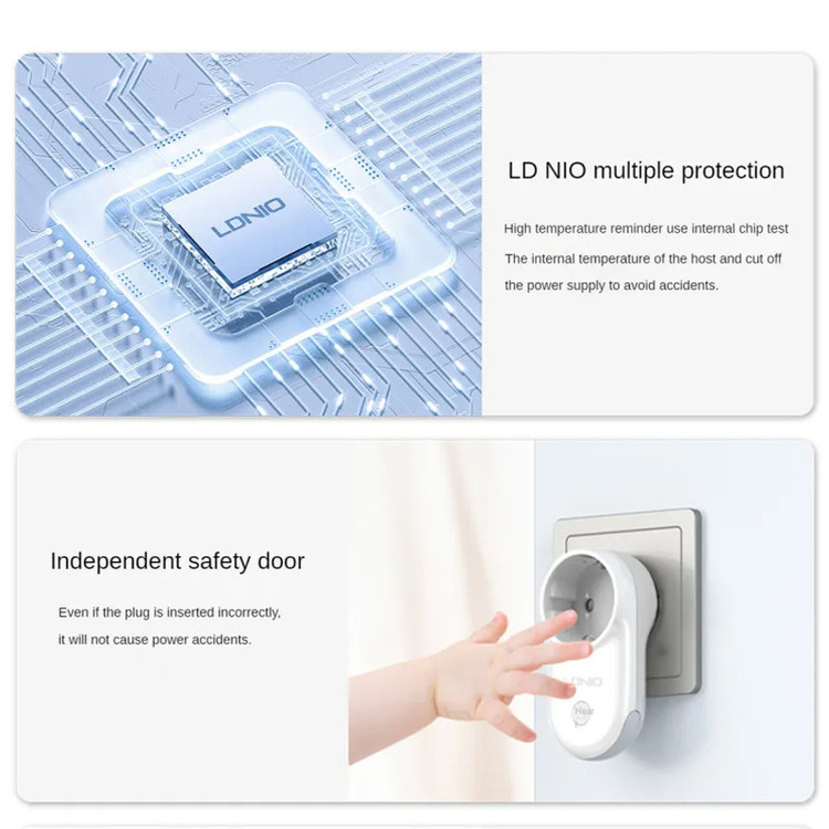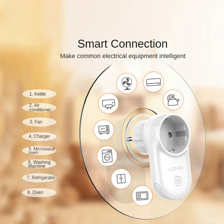 مبدل برق LDNIO SEW1058 با قابلیت هوشمند کنترل از راه دور می تواند وسیله کابردی برای منزل شما باشد. این مبدل می تواند با استفاده از WiFi وسیله های برقی شما را از راه دور کنترل کند. مثلا زمانی که سفر هستید با قطع و وصل جریان روی دستگاه های برقی کنترل داشته باشید. مبدل برق LDNIO SEW1058 دارای درگاه ورودی از نوع EU است که از دوشاخه های رایج در ایران پشتیبانی می کند و دوشاخه اتصال به برق آن نیز از نوع EU است. یک چراغ خواب LED در قسمت زیرین سوکت برق هوشند الدینیو SEW1058 قرار گرفته است که قابل تنظیم و همینطور بسیار زیبا است. توان خروجی این سوکت برق هوشند الدینیو SEW1058 برابر 2500 وات است و حداکثر 10 آمپر جریان و 250 ولت ولتاژ تحمل می کند. از امواج اولتراسونیک و مواد PC نسوز تا 850 درجه سانتیگراد در فرآیند ساخت بدنه این مبدل استفاده شده و آن را در برابر فشار و شکستن مقاوم کرده است. برای استفاده از قابلیت های سوکت برق هوشند الدینیو SEW1058 کافیست آن را به پریز برق وصل کنید. سپس دو شاخه وسیله برقی خود را به آن متصل کنید. در انتها نرم افزار را دانلود و نصب کنید. حالا می توانید با استفاده از نرم افزار از قابلیت های مبدل استفاده و وسایلتان را کنترل کنید.میتوانید با اتصال دستگاهتان به این مبدل، میزان توان آن را در نرم افزار مشاهده کنید. همچنین این مبدل قابلیت یادآوری برای خاموش کردن دستگاه های شما را دارد. می توانید برای روشن/خاموش کردن دستگاهتان زمانبندی تعریف کنید.این مبدل برق برای اتصال از Wifi با فرکانس 2.4GHz استفاده می کند. مبدل برق LDNIO SEW1058 از دستیار صوتی Amazon Alexa, Google Assistant, Baidu Xiaodu, Xiaozhi Butler, Yandex Alice پشتیبانی می کند. در صورت افزایش دما مبدل برق LDNIO SEW1058 به شما یادآوری می کند. روی پریز برق مبدل درپوش محافظ کودک جهت امنیت تعبیه شده است.
