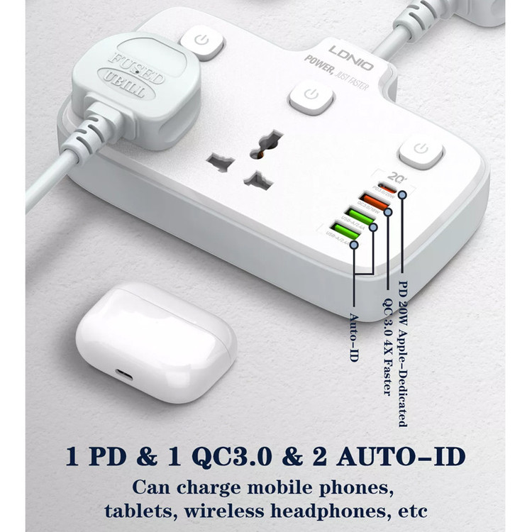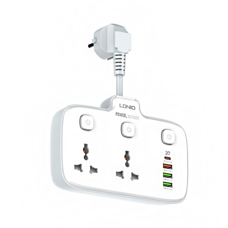 با زیاد شدن دستگاه های الکترونیکی و احتیاج به تامین انرژی آن ها نیاز به چند راهی ها هم جهت سهولت کار بیشتر شده است. چندراهی های جدید درگاه های متفاوتی هم در اختیار شما قرار میدهد تا کار شما رو راحتتر کند. چندراهی LDNIO SC2413 گزینه مناسبی برای شماست چون علاوه بر دو خروجی برق، سه خروجی USB و یک خروجی تایپ سی دارد. جنس چندراهی الدینیو از ABS و PC نسوز ساخته شده است. قسمتی که به برق متصل میشود از نوع EU است که یعنی دوشاخه است و در ایران رایج است و نیاز به خرید تبدیل جداگانه ندارید. خروجیهای برق روی چندراهی هم از نوع Universal هستند و با دو شاخههای UK، US و EU سازگارند و شما از تبدیل بی نیاز می کنند. سیم اتصال طول کمی دارد و در حدی است که بتوانید تا 180 درجه زاویه دلخواه خود را تنظیم کنید. برای کنترل جریان برق الدینیو 3 کلید برای هر خروجی برق و حتی مجموعه پورتها روی بدنه به تفکیک در نظر گرفته که میتوانید جریان برق هر کدام را قطع و یا وصل کنید که در هنگام به خطر افتادن ایمنی نیز به صورت خودکار عمل می کند. ولتاژ ورودی چندراهی SC2413 برابر 100 تا 250 ولت و حداکثر جریان ورودی 10 آمپر می باشد. پورت تایپ سی روی چندراهی با پشتیبانی از قابلیت شارژ سریع PD دارای جریان/ولتاژ خروجی 5V/3A-9V/2.22A-12V/1.67A با حداکثر توان خروجی 20 وات می باشد. یکی از خروجیهای USB به رنگ نارنجی با پشتیبانی از شارژ سریع QC3.0 دارای جریان/ولتاژ خروجی 5V/3A-9V/2A-12V/1.5A با حداکثر توان خروجی 18 وات می باشد. پورت های خروجی USB به رنگ سبز هر کدام با پشتیبانی از شارژ Auto ID دارای جریان/ولتاژ خروجی 5V/2.4A و حداکثر توان 12 وات می باشند. توان خروجی کل چندراهی برق الدینیو برای پورتهای USB و Type C برابر 20 وات است و برای خروجی های برق هم 2500 وات است. می توانید همزمان از خروجیهای این چند راهی استفاده کنید و 6 دستگاه را شارژ نمایید. فقط مانند بسیاری از شارژرها و چندراهی ها در این صورت توان خروجی بین آن ها تقسیم می شود. چندراهی الدینیو برای حفاظت از کودکان دارای درپوش روی حفره سوکت های برق است. همچنین در صورت تشخیص اضافه بار در مدار و یا رطوبت جریان را قطع می کند. عمق حفره های سوکت برق به اندازه کافی است تا دوشاخه بیرون نماند. میتوانید با خیال راحت از خرید یک چندراهی با کیفیت و ایمن لذت ببرید.