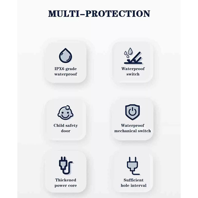 دارای 2 خروجی برق از نوع Universal | حداکثر توان خروجی برق 2500 وات | حداکثر توان خروجی شارژ 20 وات | 1 خروجی Type C و 3 خروجی USB | قابلیت شارژ سریع PD و QC 3.0 | ضد آب و مقاوم در برابر گرمای بالا