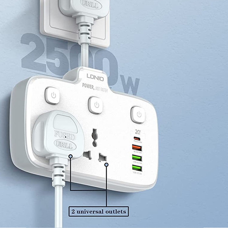 پریزها دارای توان خروجی 2500 وات از نوع Universal هستند و با دو شاخههای UK و US و EU سازگارند و شما از تبدیل بی نیاز می کنند.