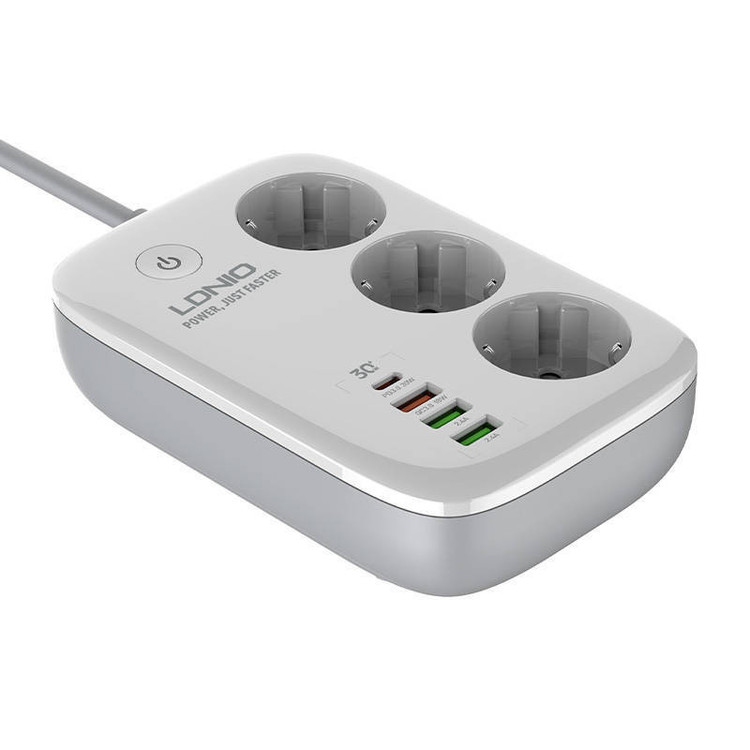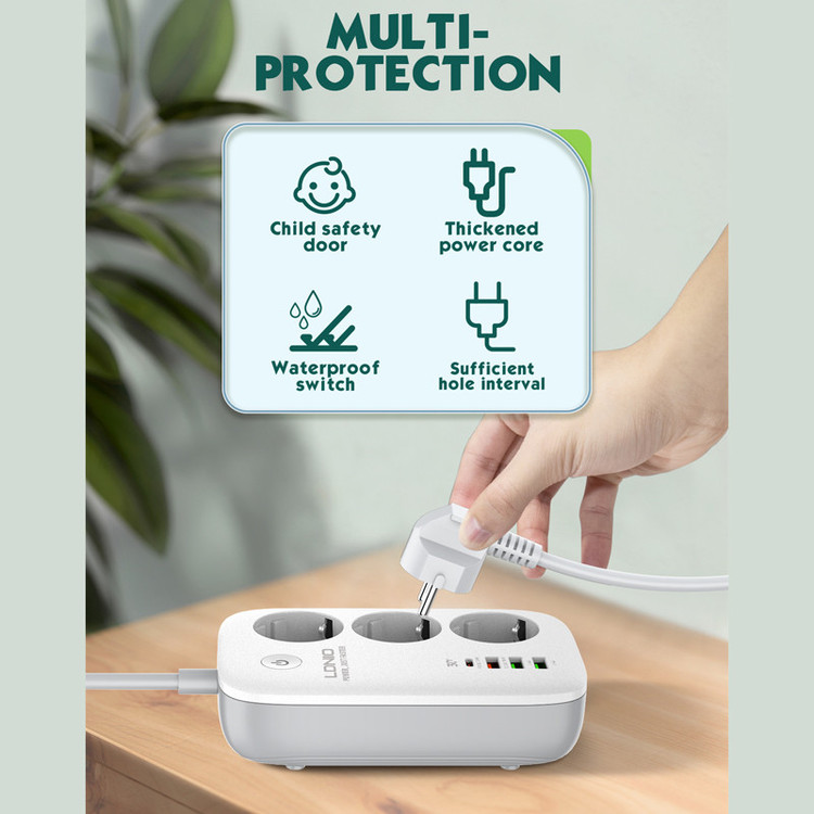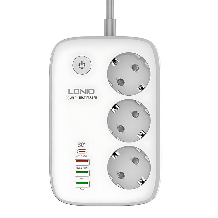 با زیاد شدن دستگاههای الکترونیکی و احتیاج به تامین انرژی چند راهی ها را بیشتر کرده است. چند راهی و USB شارژر LDNIO SEW3452 گزینه مناسبی برای میز کار شماست. این چند راهی علاوه بر 3 خروجی برق، 3 خروجی USB و 1 خروجی Type C دارد. علاوه بر این ها ارتباط WIFI دارد که برای کنترل از راه دور توسط موبایل انجام میشود. این محصول از ABS و PC نسوز ساخته شده است. دوشاخه اتصال برق نیز از نوع EU هستند و با دوشاخه های ایران سازگارند و شما از تبدیل بی نیاز می کنند. سیم اتصال به برق ضخیم و به طول 2 متر است. برای کنترل جریان برق یک کلید مرکزی روی بدنه در نظر گرفته شده است که در هنگام به خطر افتادن ایمنی نیز به صورت خودکار عمل می کند. از این کلید برای اتصال به گوشی همراه نیز استفاده می شود. ولتاژ ورودی برابر 100 تا 250 ولت و حداکثر جریان ورودی 10 آمپر می باشد. پورت Type C با پشتیبانی از قابلیت شارژ سریع PD دارای جریان/ولتاژ خروجی 5V/3A-9V/3A-12V/2.5A-15V/2.5A با حداکثر توان خروجی 30 وات است. یکی از خروجی های USB به رنگ نارنجی با پشتیبانی از شارژ سریع QC دارای جریان/ولتاژ خروجی 5V/3A-9V/2A-12V/1.5A با حداکثر توان خروجی 18 وات می باشد. پورت های خروجی USB به رنگ سبز هر کدام با پشتیبانی از شارژ Auto ID دارای جریان/ولتاژ خروجی 5V/2.4A می باشد. توان خروجی کل این چندراهی برق برای پورت های USB و Type C برابر 30 وات و برای خروجی های برق 2500 وات است. در نظر داشته باشید در صورت استفاده همزمان از خروجی ها، توان خروجی بین آن ها تقسیم می شود. چندراهی برق الدینیو SEW3452 قابلیت اتصال به تلفن همراه از طریق وای فای با فرکانس 2.4GHz را دارد. این گونه شما می توانید از راه دور به چندراهی متصل شوید و جریان خروجی از هر سوکت برق یا پورت های USB و Type C را مجزا کنترل کنید یا برای روشن و خاموش کردن آن تایمر تنظیم کنید تا آن را به شما یادآوری کند. برای نصب برنامه روی گوشی کافیست QRکد پشت چندراهی را اسکن کنید تا بقیه مراحل نصب نرم افزار بر روی گوشی انجام شود. بعد از آن از کلید روی بدنه برای اتصال به گوشی همراه استفاده کنید. چندراهی SEW3452 برای حفاظت از کودکان دارای درپوش روی حفره سوکت های برق است. همچنین در صورت تشخیص اضافه بار در مدار و یا رطوبت، جریان را قطع می کند.