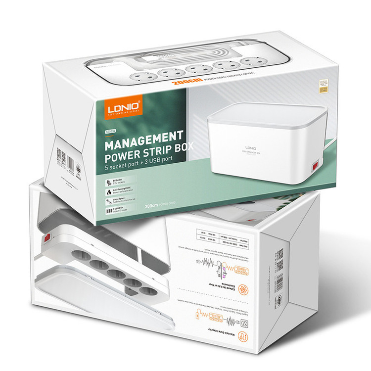 چند راهی الدینیو SE5334 از کیفیت بالای مواد ساخت و طراحی اصولی بهره می برد. از لحاظ ساختمان درونی و مواد اولیه به کار رفته درون چندراهی SE5334 باید بیان کرد که جنس آنها از مس است که 33 درصد متراکم شده و مقاومت کمی دارد؛ به همین دلیل انتقال جریان به خوبی صورت میگیرد و از بابت اتلاف انرژی، مشکلی وجود نخواهد داشت و استفاده شما بهینه خواهد بود. این چند راهی شامل 5 پریز برق ، 3 پورت USB است که میتوانید از آنها استفاده کنید. توان کلی این چند راهی 2500 وات بوده که به همین واسطه میتوانید کاربریهای مختلفی را از آن بگیرید. گفتنی است که جنس بدنه از PC نسوز است و مقاومت بالایی نیز در برابر دما داشته و این مقاومت تا دمای 850 درجه سلسیوس وجود دارد. از ویژگی های منحصر به فرد این چند راهی طراحی بدنه آن است. طراحی بدنه آن به گونه ای است که دارای محفظه ای برای در برگرفتن شارژر و سیم ها می باشد که باعث می شود میز کار شما مرتب باشد و نگران آشفتگی سیم های روی میز خود نباشید. همچنین در دو سمت باکس این چند راهی دو دریچه L شکل طراحی شده تا دسترسی به سیم ها و مدیریت آن ها راحت تر باشد. یک کلید در لبه کناری چند راهی قرار گرفته که امکان قطع و وصل کردن جریان برق را به یکباره برای تمام پورت ها ایجاد میکند تا از اتلاف انرژی برق، زمانی که بهش نیازی ندارید، جلوگیری کرده و مانع از هدر رفتن آن شود. طراحی این کلید و دریچه های خروج گرما در زیر باکس چندراهی با در نظر گرفتن ایمنی چند راهی طراحی شده اند. البته در کنار آن باید به این مورد نیز اشاره کرد که پریزها دارای محافظ کودک نیز هستند. در مواقع نیاز میتوانید به صورت همزمان از 5 خروجی برق و 3 خروجی USB این چندراهی استفاده کنید. خروجی های USB دارای IC هوشمند می باشند. استانداردهای ایمنی مختلفی که برای این چندراهی استفاده شده، کار با آن را ایمنتر کرده است. به کار گرفتن IC هوشمند، جنس مقاوم در برابر حرارت، محافظ کودک و... از جمله استانداردهای مختلفی هستند که در LDNIO SE5334 به کار رفتهاند. چند راهی برق الدینیو SE5334 قدرت خود را از طریق دوشاخهای میگیرد که با سیمی به طول 2 متر به بدنه چند راهی متصل است و با پریزهای ایرانی نیز سازگار است، بنابراین نیازی به استفاده از تبدیل نخواهید داشت.
