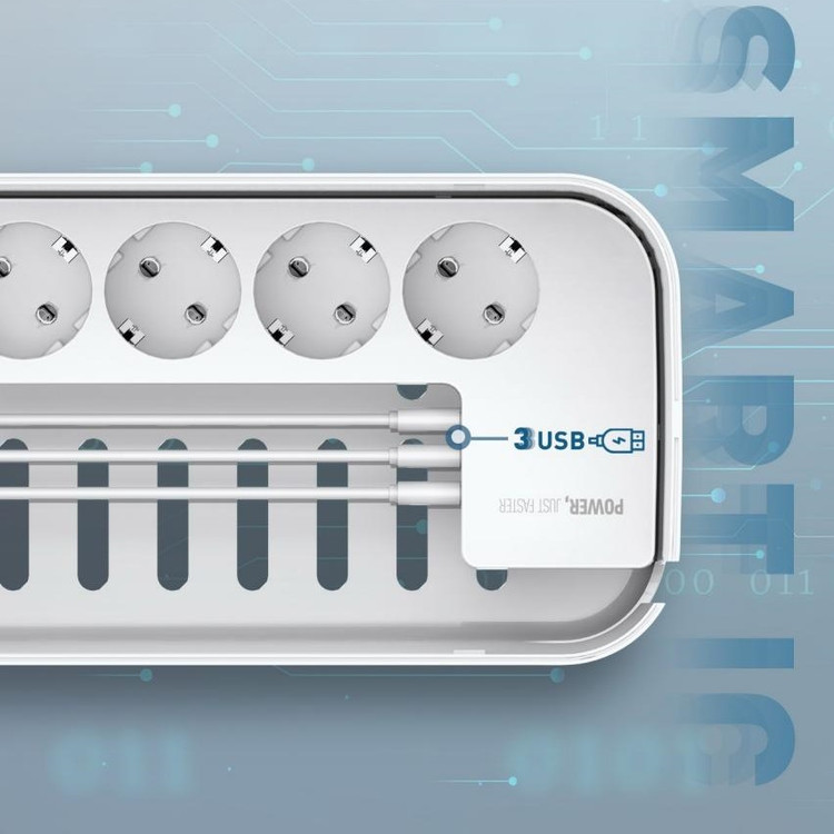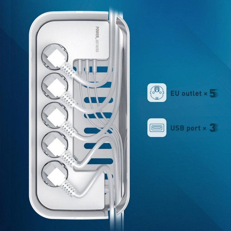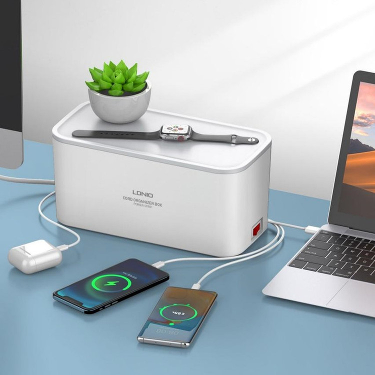 دارای 3 پورت USB و 5 پریز | طراحی محفظه مانند برای مرتب کردن سیم ها | محافظت شده در برابر تغییرات جریان | مقاوم در برابر حرارت | محافظ کودک