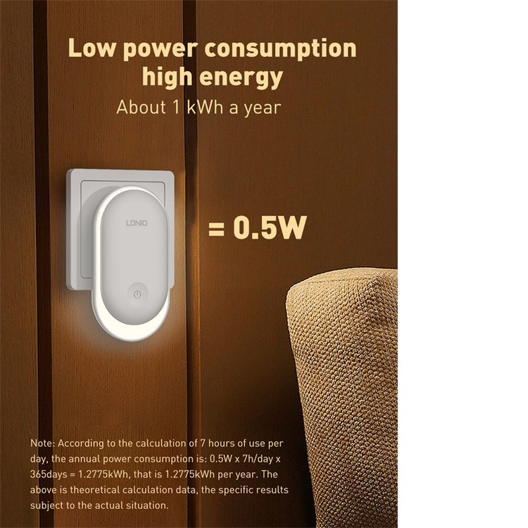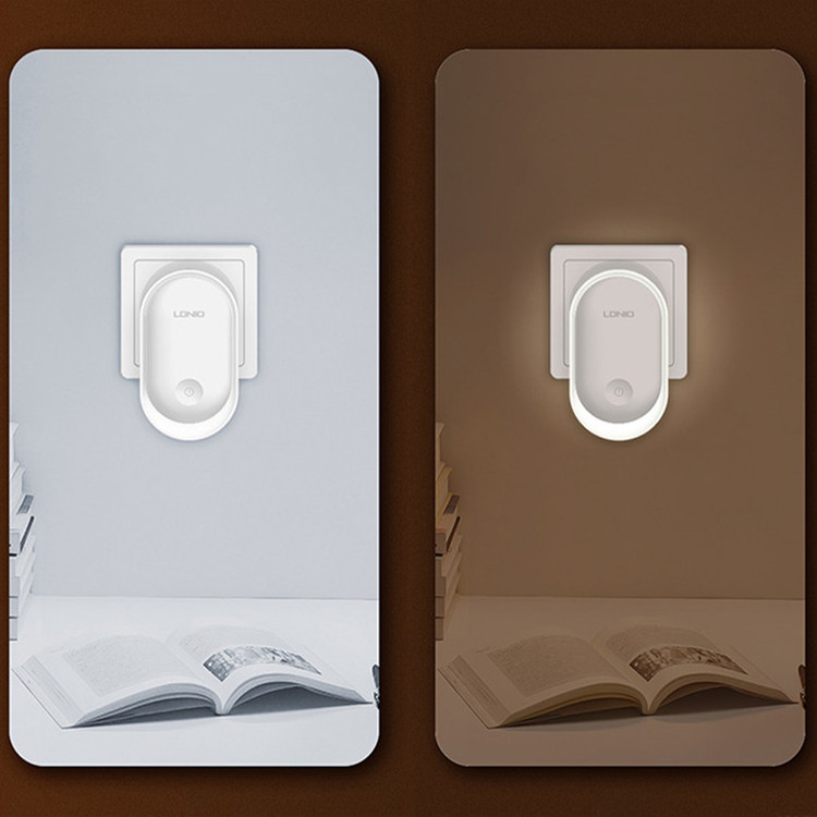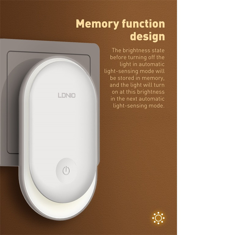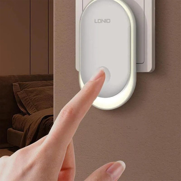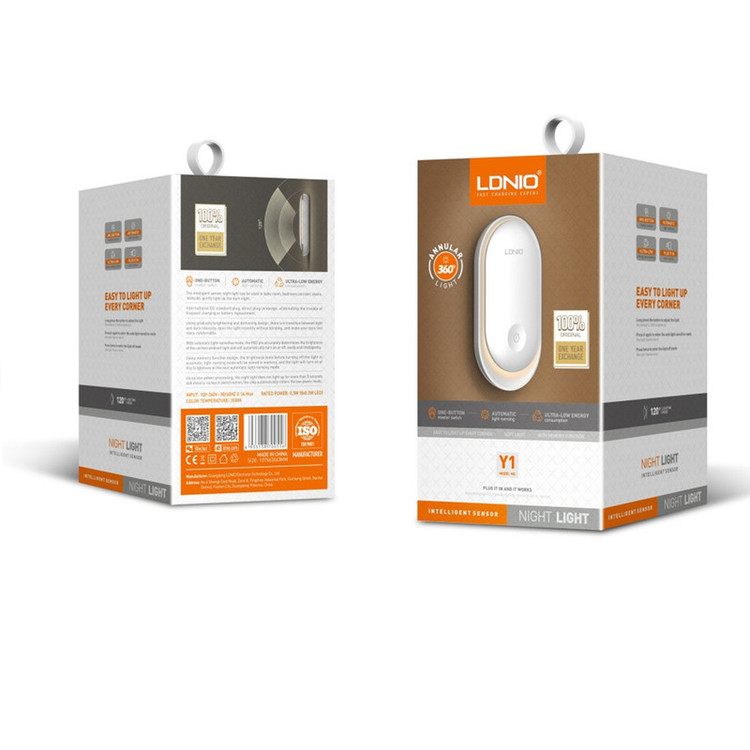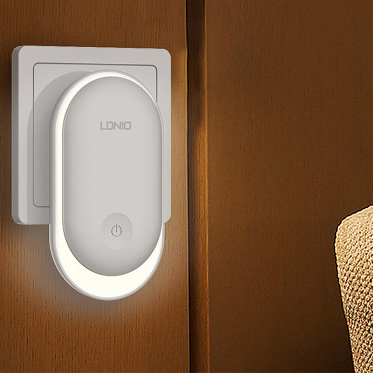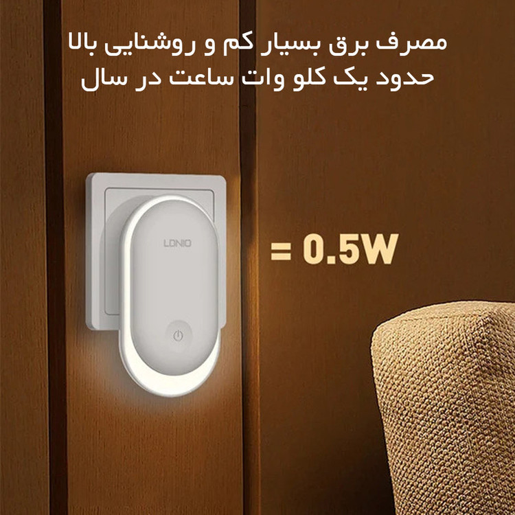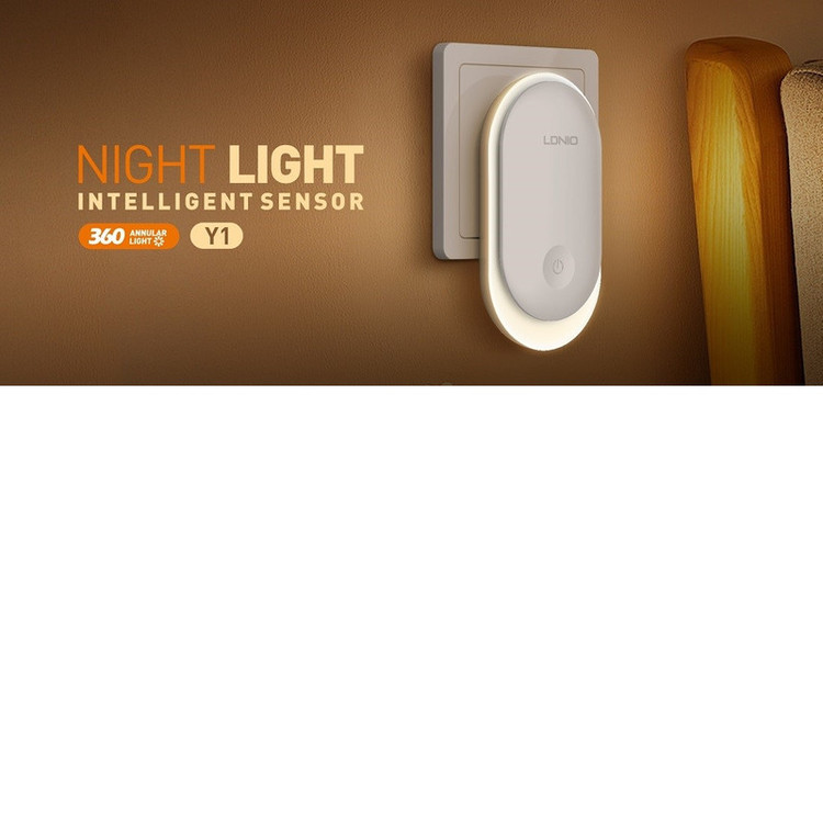 چراغ خواب Ldnio Y1 Crescent PIR Motion Sensor Night Light چراغ Ldnio Y1 را می توانید با اتصال به پریز به عنوان چراغ خواب استفاده کنید یا هر گوشه ای که لازم دارید را با نور ملایم روشن کنید. این چراغ می تواند با تشخیص میزان نور و حرکت به صورت خودکار روشن شود. مشخصات چراغ Ldnio Y1 چراغ خواب الدینیو Y1 به گونه ای طراحی شده است که برای استفاده از آن باید به پریز برق متصل کنید. اندازه کوچک و جمع و جوری دارد و روی بدنه آن یک کلید لمسی برای کنترل عملکرد آن تعبیه شده است. توان چراغ خواب الدینیو 0.5 وات و از 8 عدد LED با توان 0.2 وات ساخته شده است. نور ساطع شده از چراغ خواب الدینیو Y1 با دمای رنگی 3500 کلوین، گرم و ملایم است که چشم را خیره نمی کند و می تواند در تاریکی یک همراه خوب برای شما باشد. شما می توانید میزان شدت نور را تنظیم کنید. چراغ Ldnio Y1 شدت نوری که تنظیم می کنید را به خاطر می سپارد و زمانی که مجددا روشن می شود به همان شدت نور تنظیم شده بر می گردد. این چراغ خواب دارای نور حلقوی 360 درجه است. دو شاخه اتصال به برق چراغ Ldnio Y1 از نوع EU است که با پریز های ایران سازگار است. سنسور نور و حرکت چراغ Ldnio Y1 دارای سنسور نور و حرکت PIR است. عملکرد این سنسور به گونه ای است که در محیط روشن تاریکی ناگهانی را تشخیص داده و روشن می شود. همچنین اگر در محیط تاریک حرکت را تشخیص دهد، روشن می شود. این مزیت به شما این امکان را می دهد تا از آن در کنار تخت خواب خود استفاده کنید تا در طول شب در صورتی که از تخت خود پایین روید؛ روشن شود.
