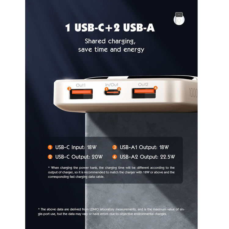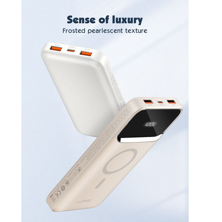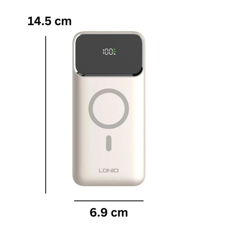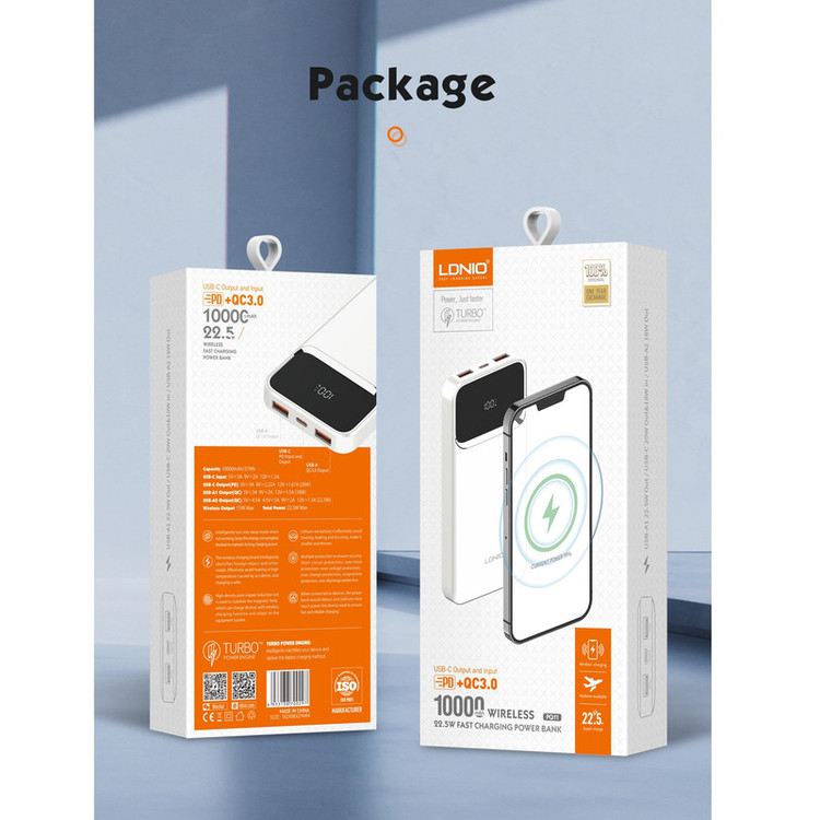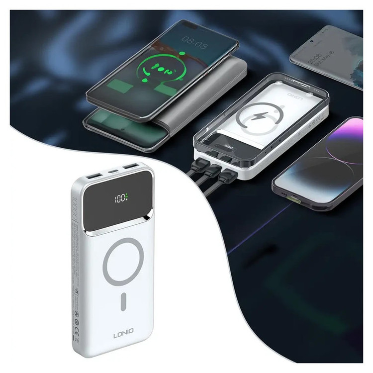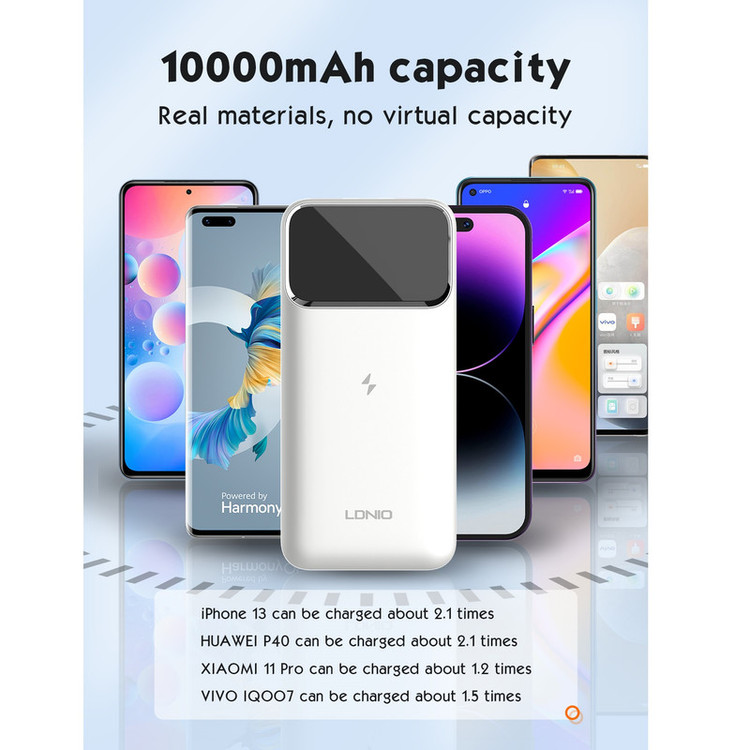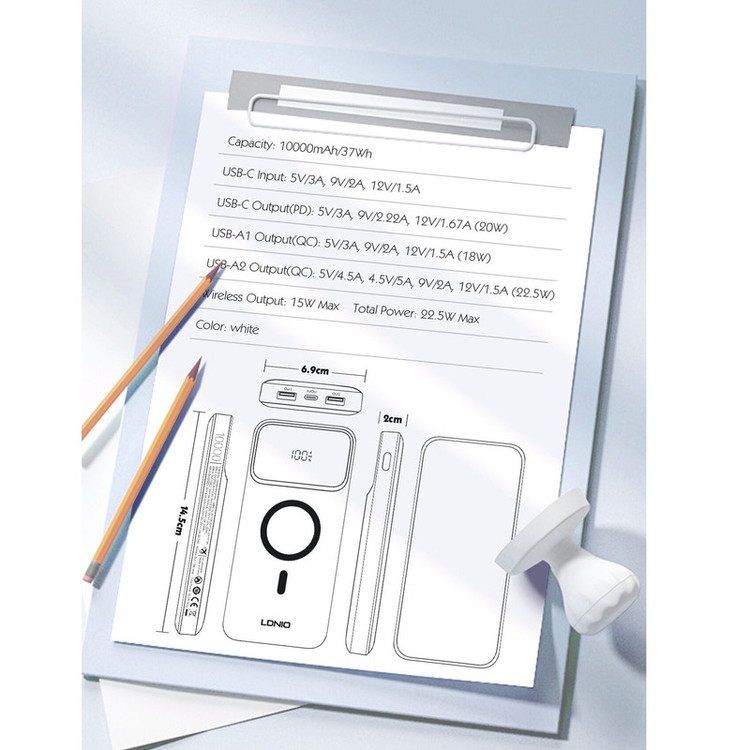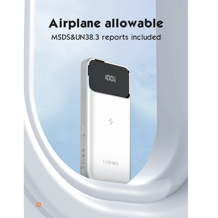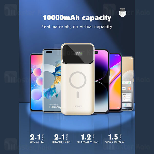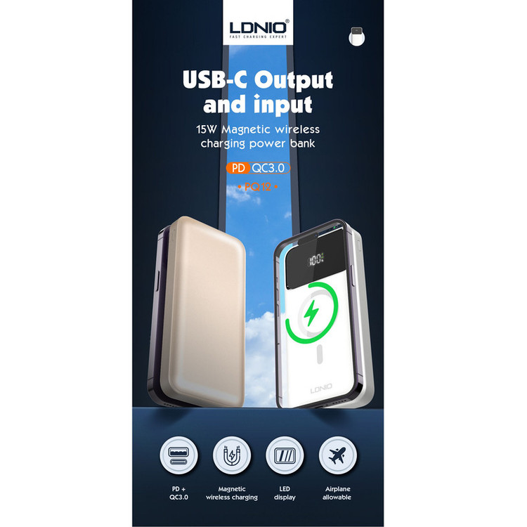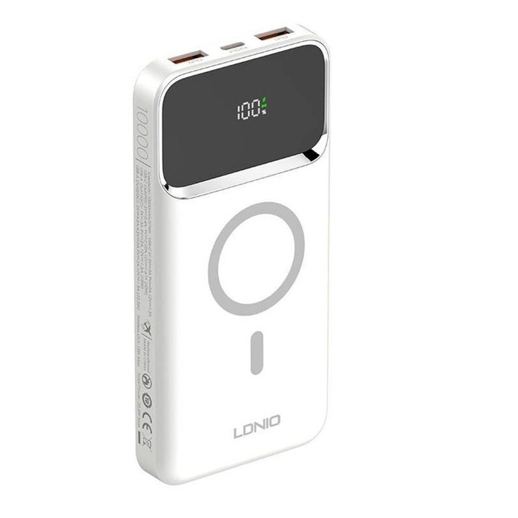 پاوربانک LDNIO PQIZ با پورتهای مختلفی که دارد و قابلیت شارژ وایرلس مگنتی، امکانات خوبی را برای کاربران فراهم کرده است؛ از سری آیفون 12 به بعد گوشیهای اپل میتواند به کمک قابلیت مغناطیسی بدنهاش به شارژرهای وایرلسی که مغناطیسی هستند بچسبد و سریع شارژ شود. در حالی که سایر گوشی های دارای قابلیت وایرلس خاصیت مگنتی ندارند و همیشه احتمال جدا شدن از شارژر وجود دارد. ر روی بدنه ی این شارژر قسمتی برای شارژ وایرلس در نظر گرفته شده که شما با استفاده از آن می توانید گوشی های خود که از این تکنولوژی پشتیبانی می کنند را شارژ کنید. این قسمت مگنتی بوده که باعث می شود گوشی و شارژر در دقیق ترین حالت روی هم قرار گرفته و شارژ به نحو احسن انجام شود. البته گوشی شما باید از این قابلیت نیز (مگنتی) پشتیبانی کند. قابلیت استفاده در هواپیما در بیشتر موارد حمل و استفاده از پاوربانک در هواپیما ممنوع است؛ اما بعضی از پاوربانک ها اجازه ورود به هوایپما را دارند. یکی از ویژگی های مهم پاوربانک LDNIO PQ10 قابلیت حمل و استفاده در هواپیما است. تکنولوژی شارژ سریع PD و QC پاوربانک وایرلس مگنتی الدینیو PQIZ از تکنولوژی شارژ سریع PD و QC در پورت USB و Type C پشتیبانی می کند؛ و شما می توانید با استفاده از این درگاه ها دستگاه های (یک یا چند دستگاه) خود را با سرعت بالا شارژ کنید. باید توجه داشته باشید که در هنگام شارژ همزمان چندین دستگاه توان خروجی این پاوربانک بین پورت ها تقسیم خواهد شد. حداکثر توان پورت PD برابر با 20 وات خواهد بود. باید توجه داشته باشید که ظرفیتی که از پاوربانک دریافت میکنید دقیقا همان ظرفیتی که روی آن درج شده نخواهد بود. ظرفیت نوشته شده روی پاوربانک ظرفیت اسمی نام دارد. ظرفیت اسمی پاوربانکها با ولتاژ 3.7 ولت محاسبه میشود اما ظرفیتی که شما دریافت میکنید با ولتاژ مناسب دستگاهی است که آن را با پاوربانک شارژ میکنید. عواملی چون هدر رفت ظرفیت طی فرآیند تبدیل ولتاژ، استفاده از کابل نامناسب، استفاده از گوشی در حین شارژ توسط پاوربانک، باز بودن برنامههای زیاد در پس زمینه گوشی و ... میتوانند در از دست رفتن ظرفیت پاوربانک تاثیر گذار باشند. ظرفیت واقعی این پاوربانک 10000 میلی آمپر بسته به ولتاژ خروجی دستگاههای شما حدودا در رنج 5 تا 7 هزار میلی آمپر خواهد بود.