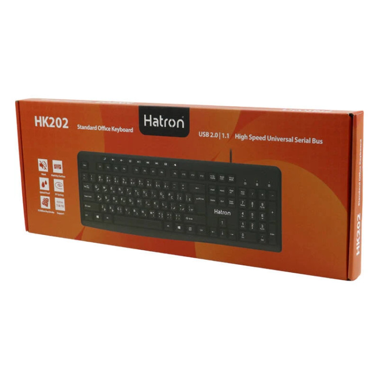 کیبورد هترون مدل HK220 از انواع کیبورد های سیم دار هترون بوده که از طریق رابط USB به رایانه متصل می شود. بعد از اتصال به کامپیوتر و بدون نیاز به نصب درایور خاصی آماده به کار هستند. کلید های این کیبورد دارای برچسب چاپ فارسی است و همانند سایر کیبورد های رایج دارای کلید های عددی در سمت راست خود است. این کیبورد در رنگ مشکی به بازار عرضه می شود و ظاهر آن مناسب محیط های اداری، بانک ها و … است. در قسمت بالایی آن سه نشان گر LED وجود دارد که اطلاعاتی از وضعیت اتصال صحیح کیبورد به رایانه، فعال بودن کلید Caps Lock و فعال بودن کلید Num Lock را به کاربر ارائه می دهد. جنس بدنهی آن از پلاستیک با کیفیت است و میتواند مقاومت خوبی در برابر انواع صدمات داشته باشد. طراحی و ساخت این کیبورد هترون با ارتفاع مناسبی که دارد امکان تایپ سریع را فراهم کرده و از خستگی شما در استفاده طولانی مدت جلوگیری می کند. این کیبورد گزینه خوبی برای افرادی است که به دنبال کیبوردی استاندارد هستند. این کیبورد هترون دارای رنگ مشکی بوده و با کابل استاندارد 1٫3 متری که دارد برای ادارات ، سازمان ها، و بانک ها مناسب هستند.