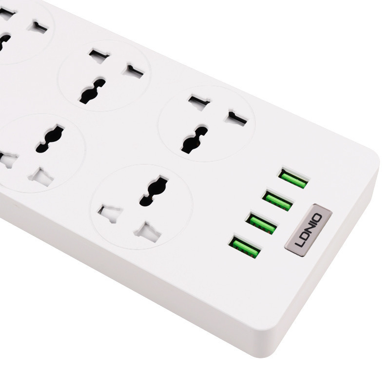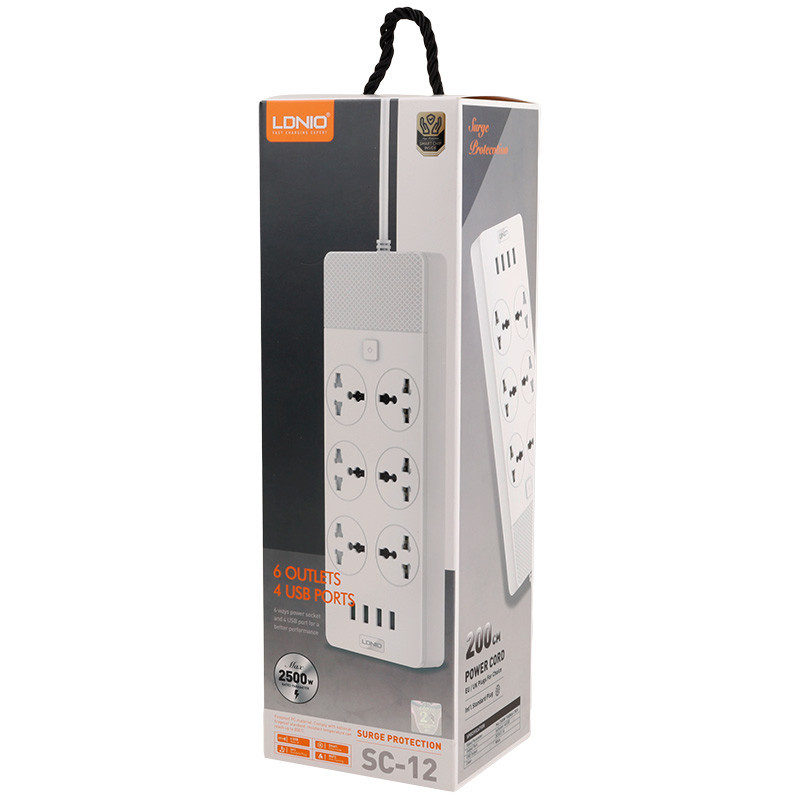 چند راهی 6 خانه برق ارت دار الدینیو SC-12 با کابل 2 متری + شارژر USB چند راهی برق الدینیو مدل SC-12 با کابل 200 سانتی متری و 4 پورت USB موفق به کسب استاندارد سلامت و ایمنی محصول CE/ FCC/ RoHS تعبیه کلید فیزیکی بر روی بدنه به منظور خاموش و روشن کردن دستگاه بهره مندی از 6 عدد پریز ارت دار، دوشاخه از نوع EU مناسب برای پریز های برق ایران کابل به طول 200 سانتی متر با روکشی از جنس پلاستیک مقاوم در برابر گره خوردگی و پارگی متریال ساخت پلاستیک ABS مقاوم در برابر ضربه، فشار، رطوبت و حرارت تا دمای 850 درجه سانتی گراد پورت های USB مجهز به فناوری Auto-ID جهت تخصیص هوشمند جریان و ولتاژ مناسب دستگاه متصل مجهز به 4 پورت USB به منظور شارژ دستگاه های سازگار با شدت جریان خروجی برابر با 2.1 آمپر در ولتاژ 5 ولت ولتاژ ورودی برابر با 250 ولت و فرکانس ورودی 50 الی 60 هرتز، توان خروجی اسمی برابر با 2500 وات، حداکثر شدت جریان انتقالی 10 آمپر