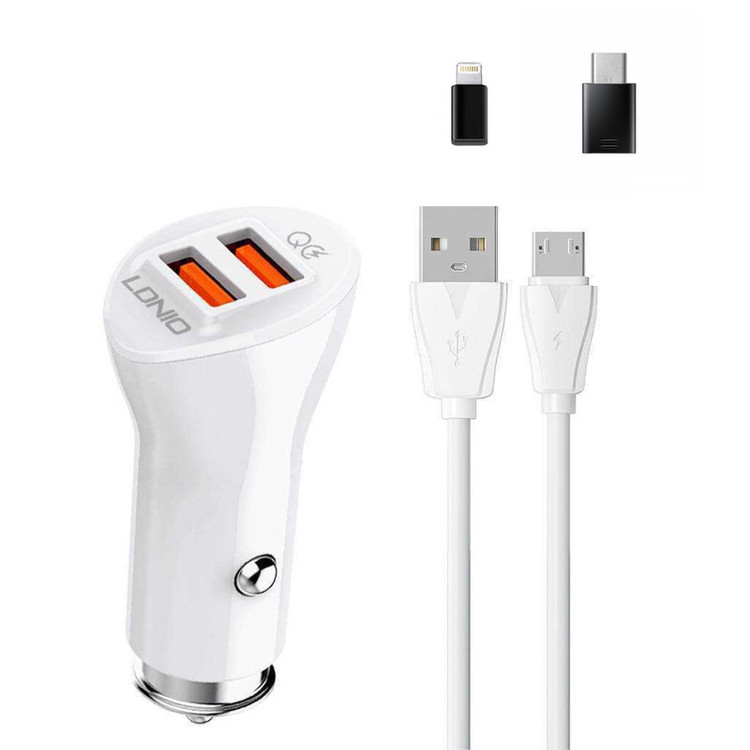 شارژر فندکی 36 وات الدینیو مدل C511Q به همراه کابل تبدیل USB به microUSB / لایتنینگ / USB-C