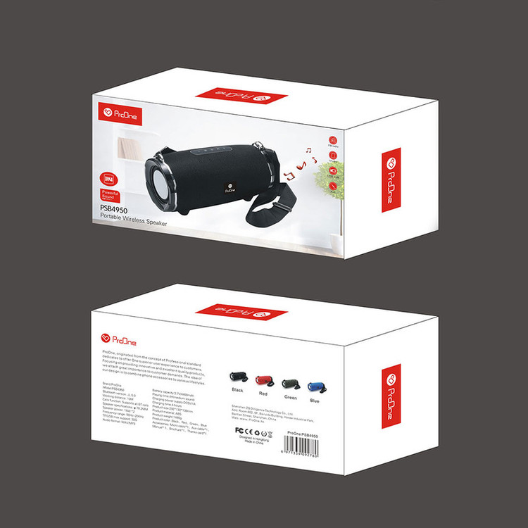 همیشه جای یک موسیقی در مهمانی و دورهمیهای دوستانه خالی است به همین دلیل اکثریت افراد با خرید اسپیکرهای بلوتوثی قابل حمل کار خود را راحت میکند تا همیشه موسیقی در هر محفلی پابرجا باشد. همچنین با افزایش علاقهمند مصرف کنندگان به کالاهای صوتی، اسپیکرها با مدلها و قابلیتهای متنوعی تولید شدهاند. برند پرووان، یکی از پیشتازان تولید لوازم جانبی دیجیتال، با بررسی نیاز مردم نسبت به طراحی و تولید اسپیکر قابل حمل PSB4950 اقدام کرده است. این اسپیکر با ابعادی معادل طول 292، عرض 132 و ارتفاع 139 میلی متر طراحی و تولید شده است که خود اسپیکر وزنی معادل 1480 گرم دارد. زیر اسپیکر دو پایه مسطح جهت قرار دادن اسپیکر روی سطوح طراحی شده و در قسمت بالای اسپیکر PSB4950 یک پنل کاربردی جهت قطع و وصل کردن، عقب و جلو زدن موسیقی و تغییر حالات پخش قرار دارد. در این اسپیکر محفظههای پورتهای اتصال، شارژ اسپیکر و دکمه روشن و خاموش قرار دارد. قدرت این اسپیکر در مجموع 30 وات بوده و دارای باتری 4400 میلی آمپر است که بطور نرمال 4 ساعت زمان پخش موسیقی دارد و مدت زمان شارژ آن 4 ساعت است.